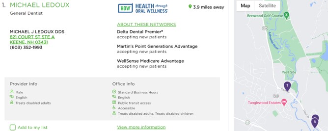 - You may then customize your search by selecting a distance range, dentist name, practice name and/or specialty.